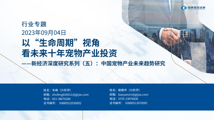 【国泰君安证券】【20230904】20230904-国泰君安-宠物行业新经济深度研究系列(五)︰中国宠物产业未来趋势研究:以“生命周期”视角-看未来十年宠物产业投资-45页