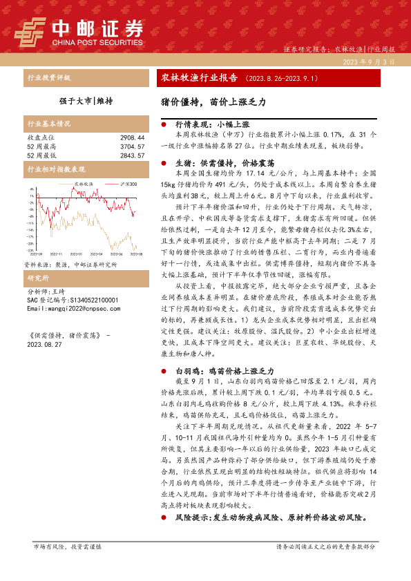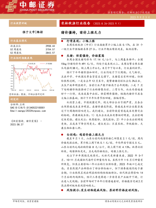 【中邮证券】【20230903】20230903-中邮证券-农林牧渔行业报告:猪价僵持,苗价上涨乏力-12页