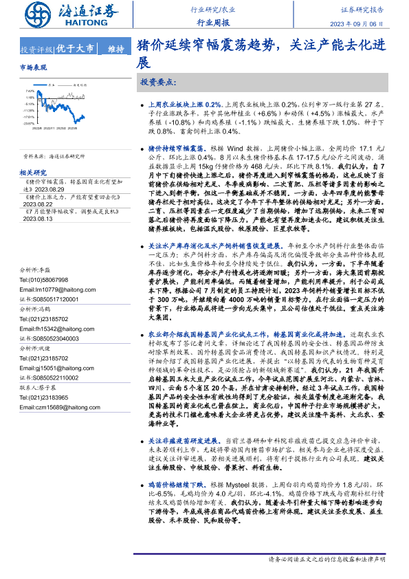 【海通证券】【20230906】20230906-海通证券-农业行业周报:猪价延续窄幅震荡趋势,关注产能去化进展-11页