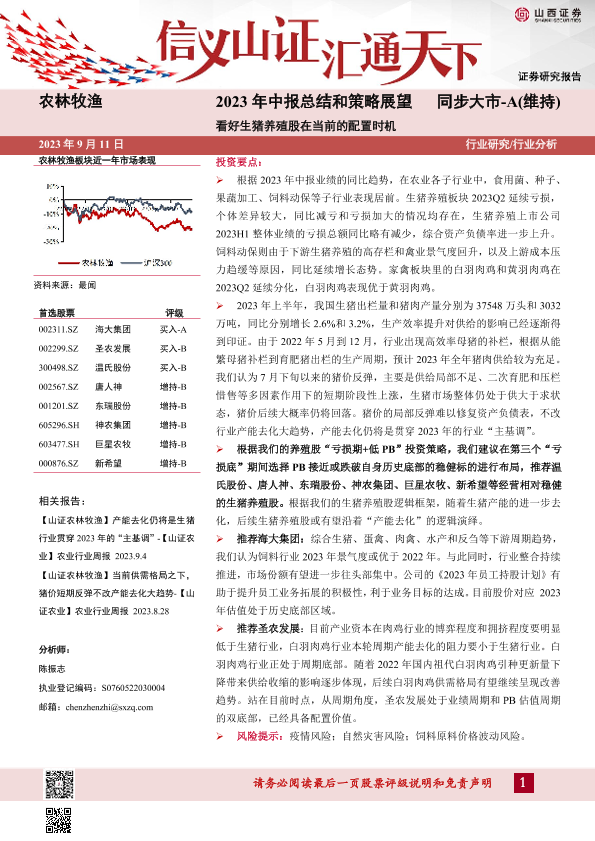 【山西证券】【20230911】农林牧渔2023年中报总结和策略展望:看好生猪养殖股在当前的配置时机-35页