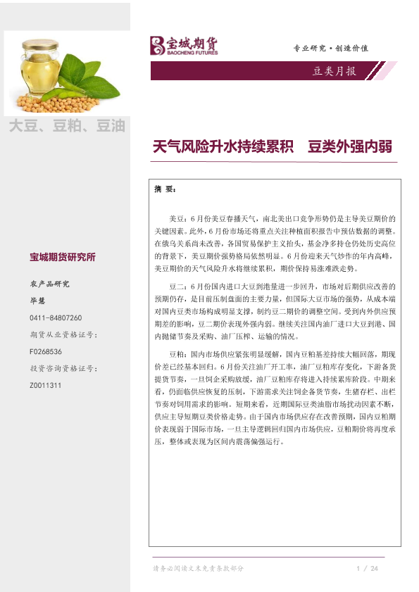 【宝城期货】【20220530】豆类月报:天气风险升水持续累积,豆类外强内弱-27页