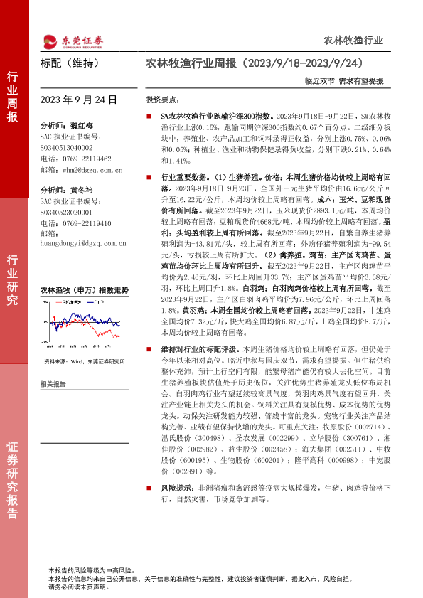 【东莞证券】【20230924】20230924-东莞证券-农林牧渔行业周报:临近双节 需求有望提振-10页