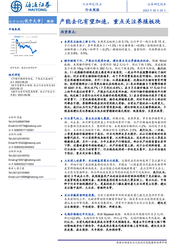 【海通证券】【20230924】20230924-海通证券-农业行业周报:产能去化有望加速,重点关注养殖板块-11页