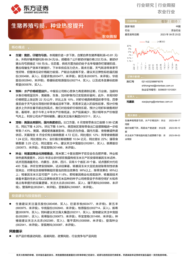 【东方证券】【20230925】20230925-东方证券-农业周报:生猪养殖亏损,种业热度提升-12页