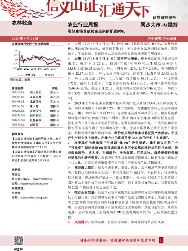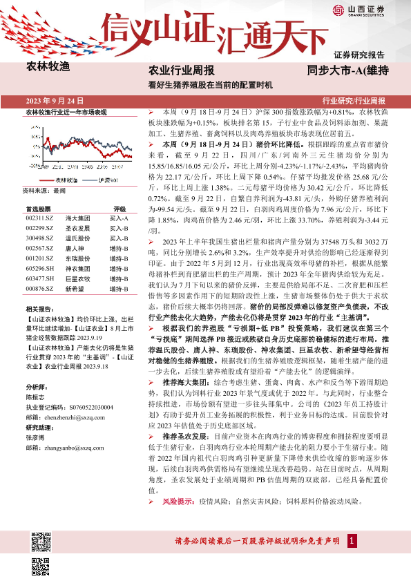 【山西证券】【20230924】农业行业周报:看好生猪养殖股在当前的配置时机-19页