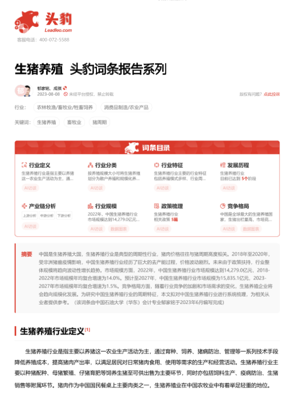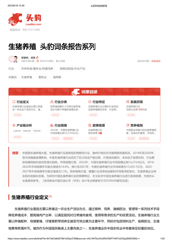 【头豹研究院】【202308】20230926-头豹研究院-生猪养殖 头豹词条报告系列-20页