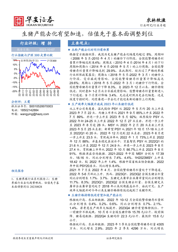 【华安证券】【20231007】20231007-华安证券-农林牧渔行业专题:生猪产能去化有望加速,估值先于基本面调整到位-16页