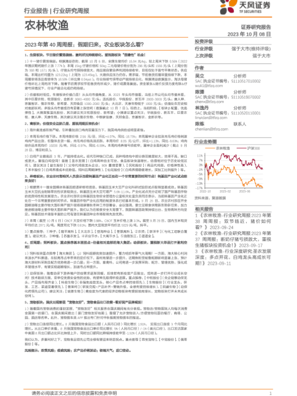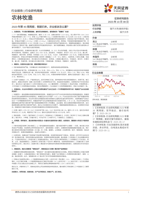 【天风证券】【20231008】2023年第40周周报:假期归来,农业板块怎么看?-15页