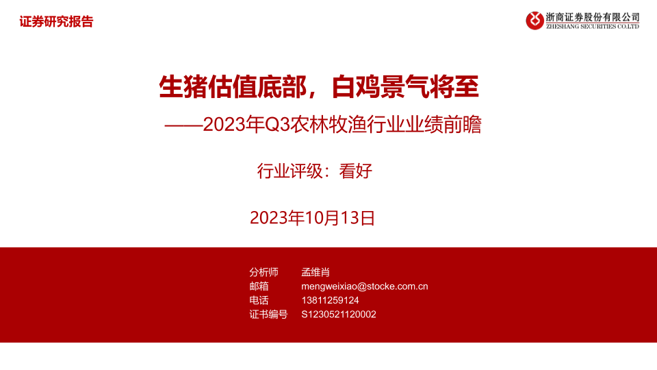 【浙商证券】【20231013】2023年Q3农林牧渔行业业绩前瞻:生猪估值底部,白鸡景气将至-24页