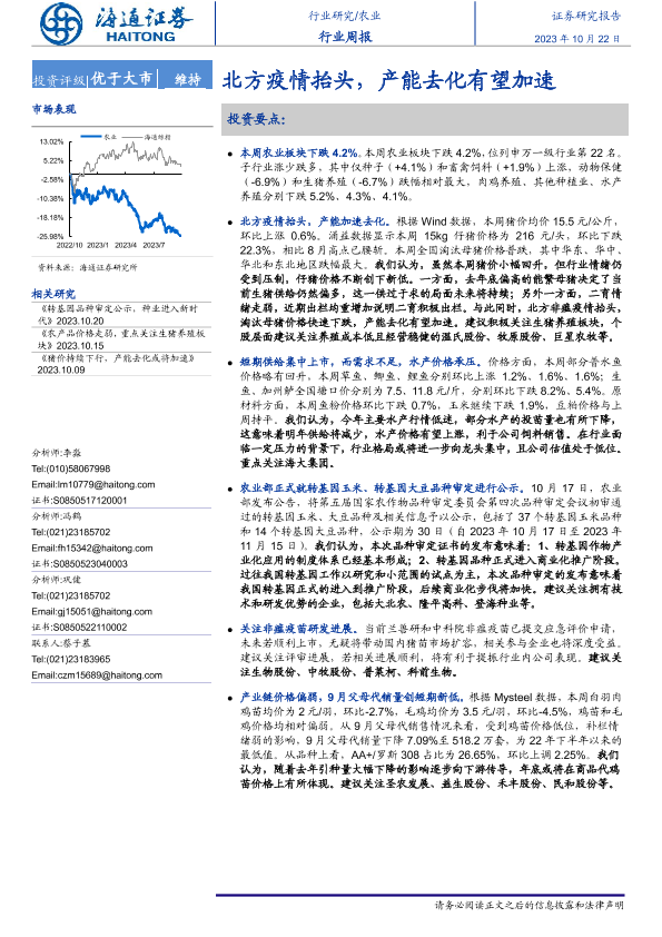 【海通证券】【20231022】20231022-海通证券-农业行业周报:北方疫情抬头,产能去化有望加速-11页