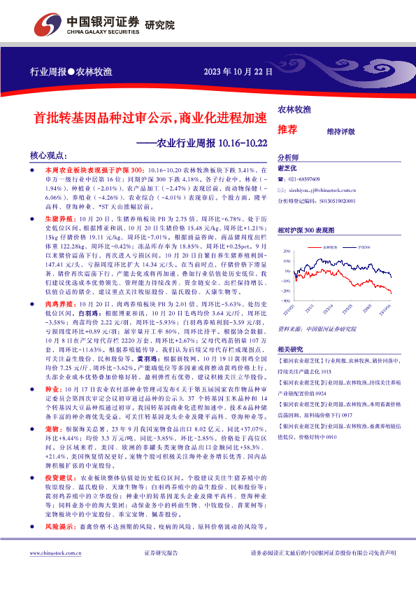 【银河证券】【20231022】农业行业周报:首批转基因品种过审公示,商业化进程加速-14页