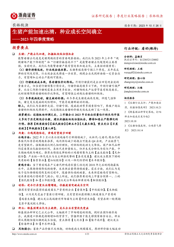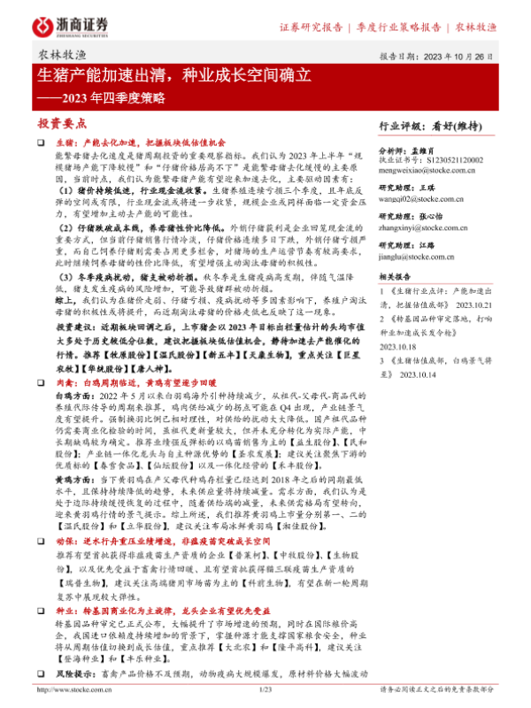 【浙商证券】【20231026】2023年四季度策略:生猪产能加速出清,种业成长空间确立-23页