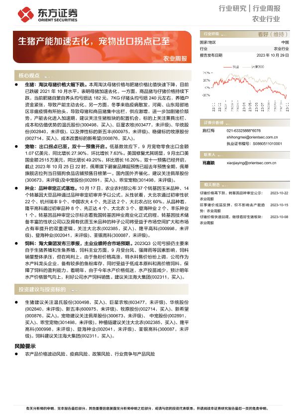 【东方证券】【20231029】20231029-东方证券-农业周报:生猪产能加速去化,宠物出口拐点已至-12页