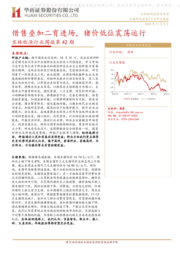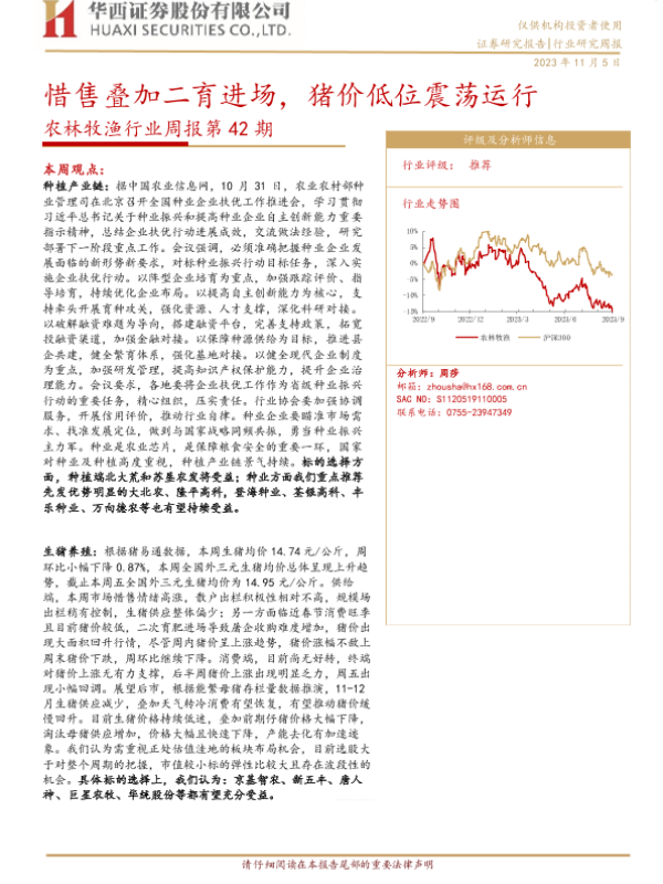【华西证券】【20231105】农林牧渔行业周报第42期:惜售叠加二育进场,猪价低位震荡运行-25页