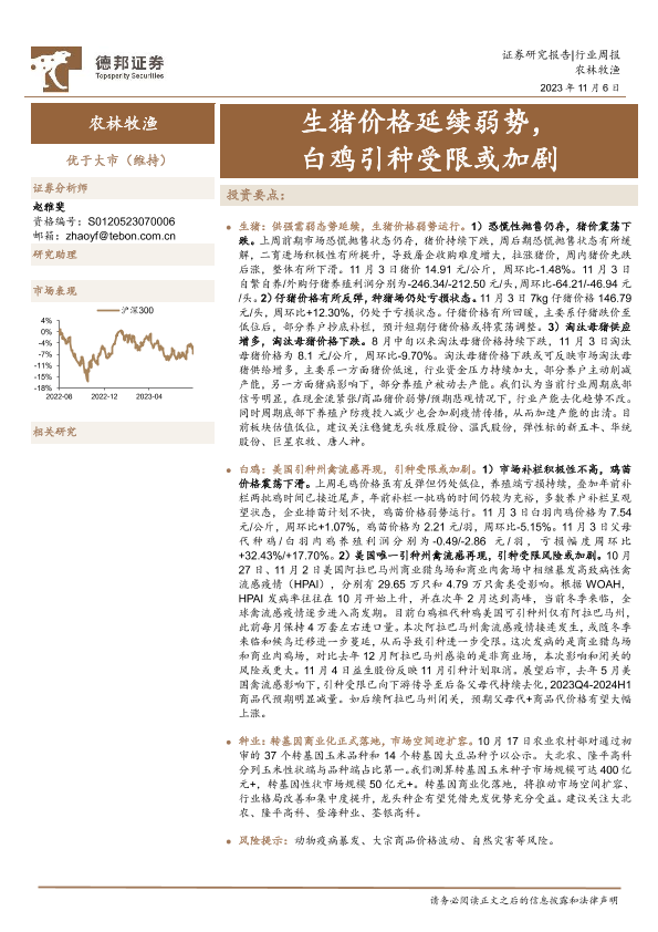 【德邦证券】【20231106】20231106-德邦证券-农林牧渔行业周报:生猪价格延续弱势,白鸡引种受限或加剧-17页