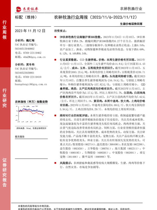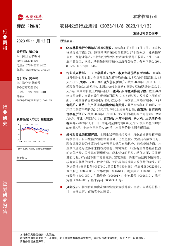 【东莞证券】【20231112】20231112-东莞证券-农林牧渔行业周报:生猪价格弱势回落-11页
