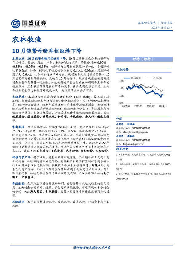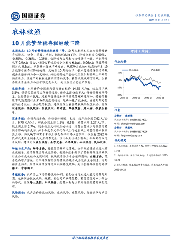 【国盛证券】【20231112】农林牧渔行业周报:10月能繁母猪存栏继续下降-13页