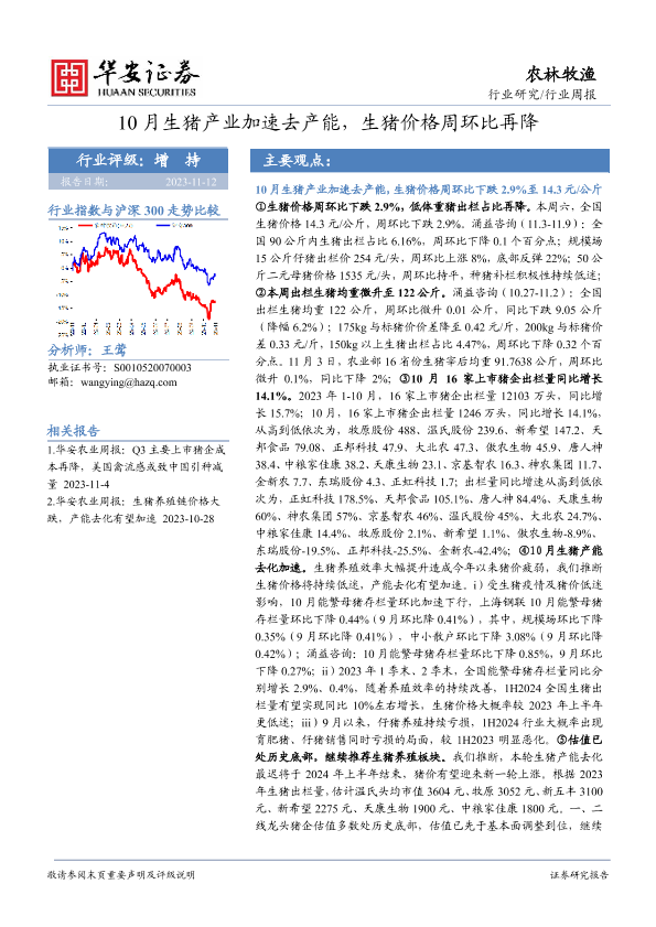 【华安证券】【20231112】20231112-华安证券-农林牧渔行业周报:10月生猪产业加速去产能,生猪价格周环比再降-41页