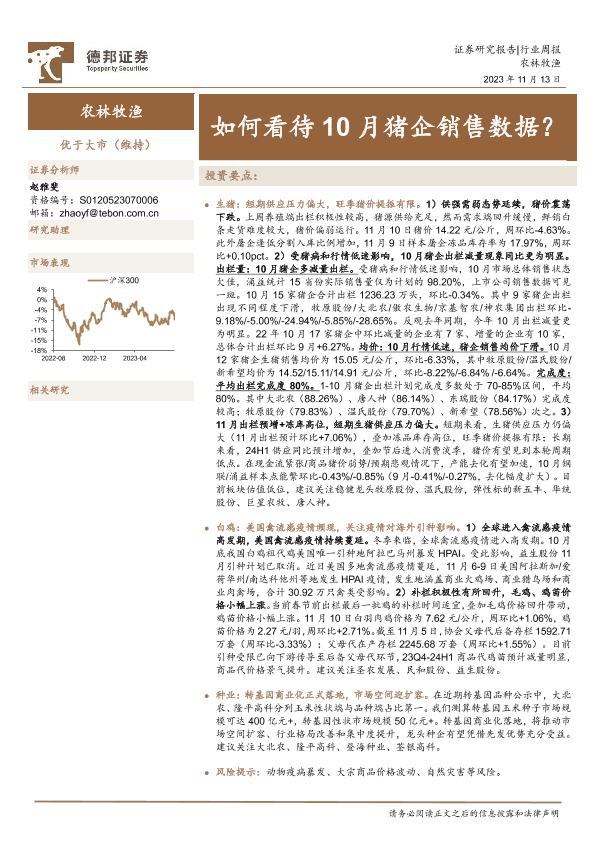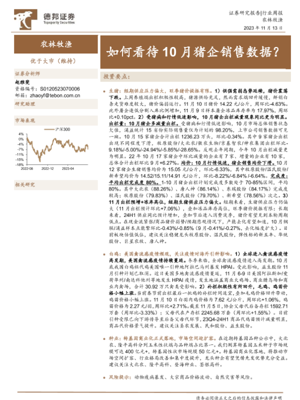 【德邦证券】【20231113】20231113-德邦证券-农林牧渔行业周报:如何看待10月猪企销售数据?-19页