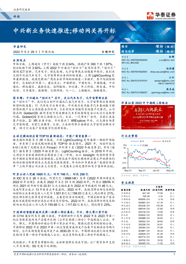 【华泰证券】【20220529】通信行业专题研究:中兴新业务快速推进;移动网关再开标-26页