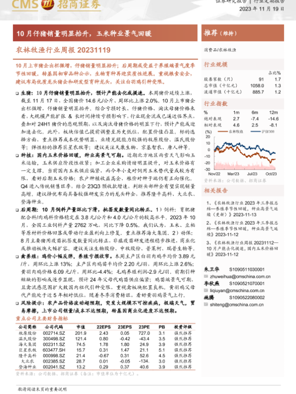 【海通证券】【20231119】农林牧渔行业周报:10月仔猪销量明显抬升,玉米种业景气回暖-16页