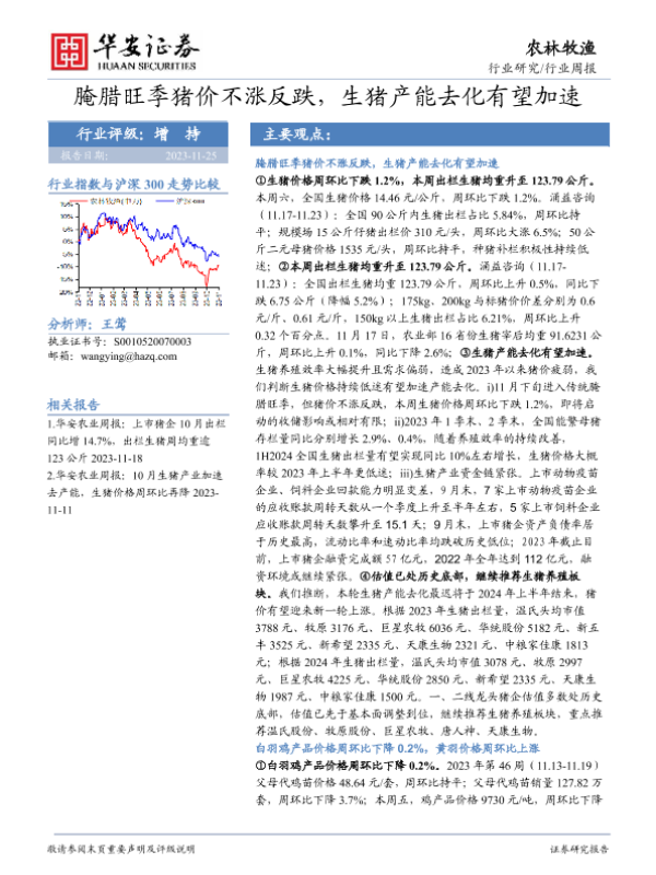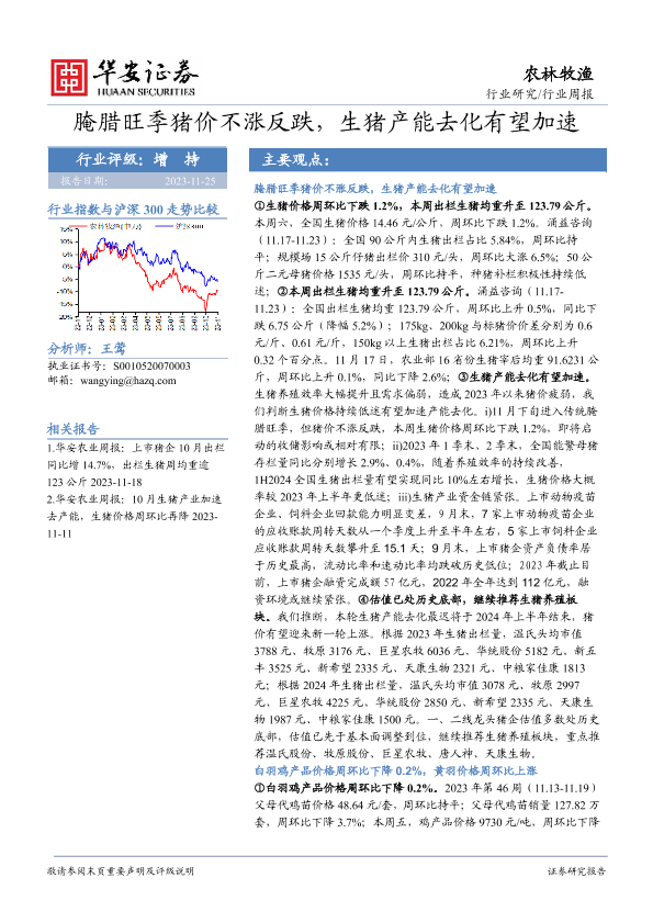 【华安证券】【20231125】20231125-华安证券-农林牧渔行业周报:腌腊旺季猪价不涨反跌,生猪产能去化有望加速-40页