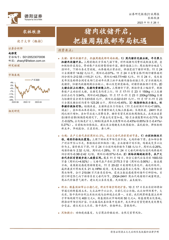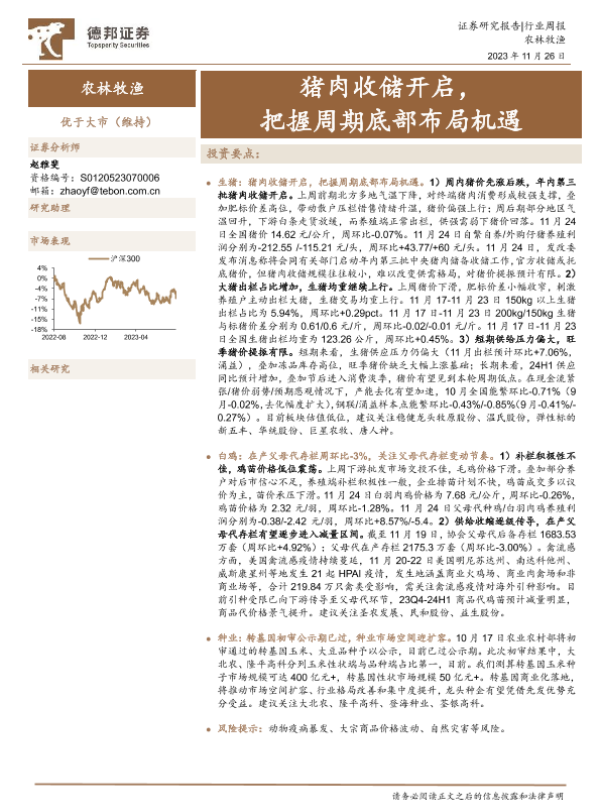 【德邦证券】【20231126】20231126-德邦证券-农林牧渔行业周报:猪肉收储开启,把握周期底部布局机遇-17页