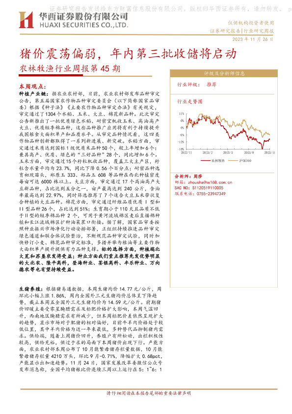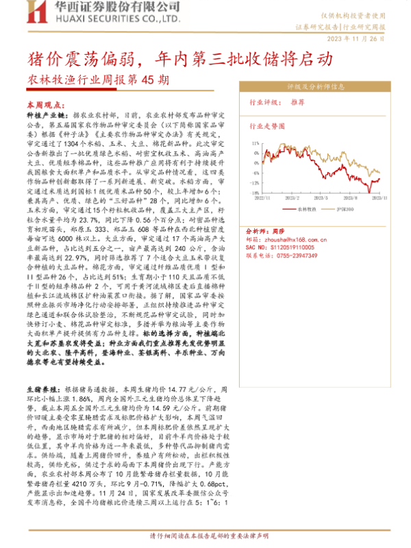 【华西证券】【20231126】农林牧渔行业周报第45期:猪价震荡偏弱,年内第三批收储将启动-25页