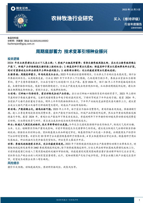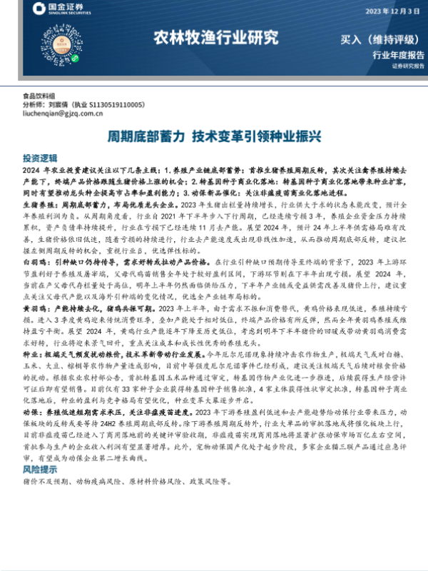 【国金证券】【20231203】20231203-国金证券-农林牧渔行业研究:周期底部蓄力 技术变革引领种业振兴-20页