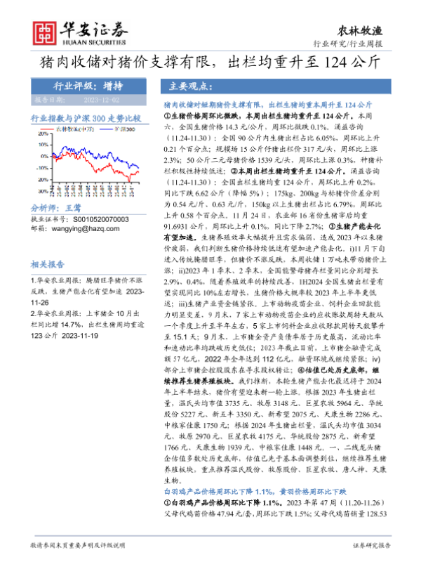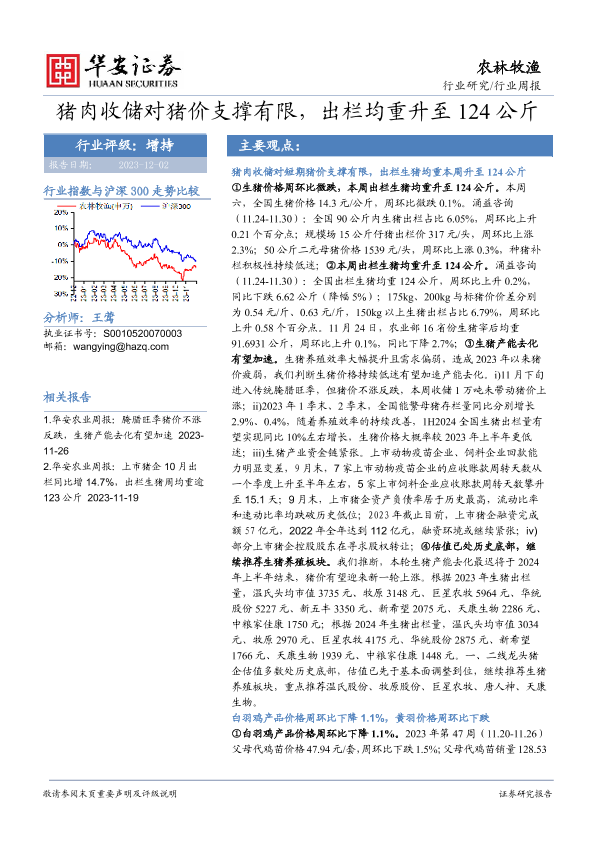 【华安证券】【20231202】20231202-华安证券-农林牧渔行业周报:猪肉收储对猪价支撑有限,出栏均重升至124公斤-40页
