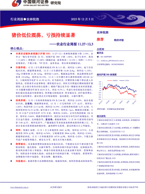 【银河证券】【20231203】20231203-中国银河-农业行业周报:猪价低位震荡,亏损持续显著-15页