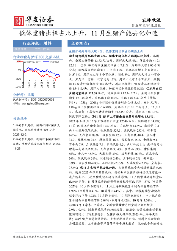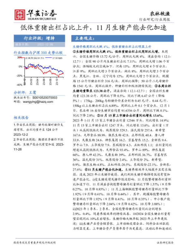 【华安证券】【20231208】20231208-华安证券-农林牧渔行业周报:低体重猪出栏占比上升,11月生猪产能去化加速-41页