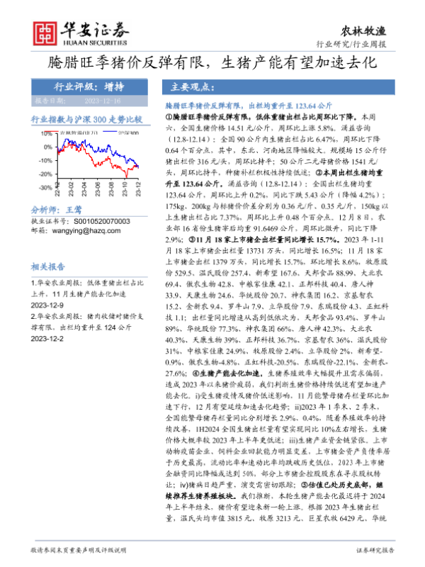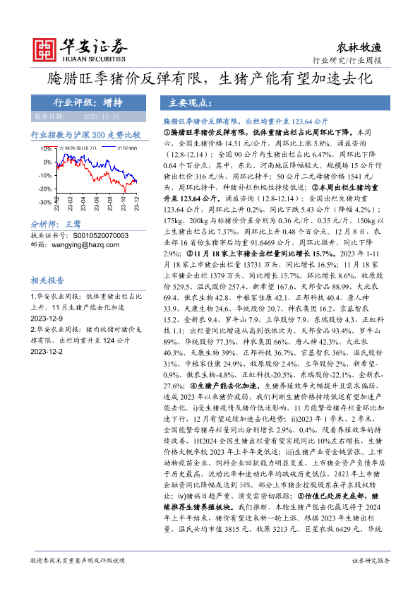 【华安证券】【20231216】20231216-华安证券-农林牧渔行业周报:腌腊旺季猪价反弹有限,生猪产能有望加速去化-42页