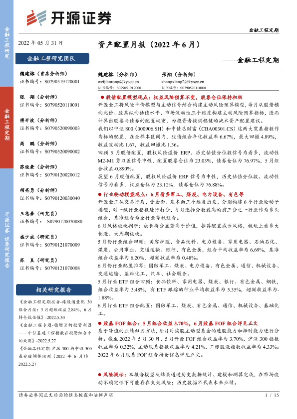 【开源证券】【20220531】金融工程定期:资产配置月报(2022年6月)-15页