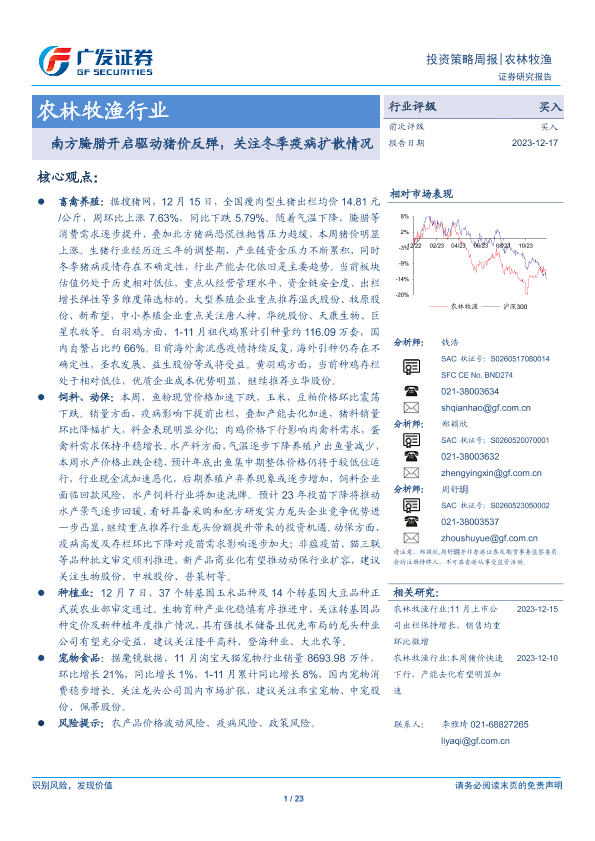 【广发证券】【20231217】20231217-广发证券-农林牧渔行业投资策略周报:南方腌腊开启驱动猪价反弹,关注冬季疫病扩散情况-23页
