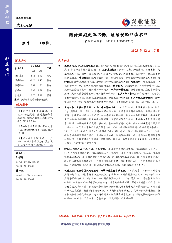 【兴业证券】【20231217】猪价短期反弹不畅,继续演绎旺季不旺-15页