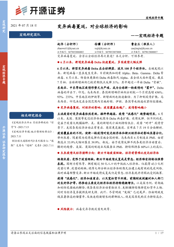 【开源证券】【20210718】变异病毒蔓延,对全球经济的影响-17页