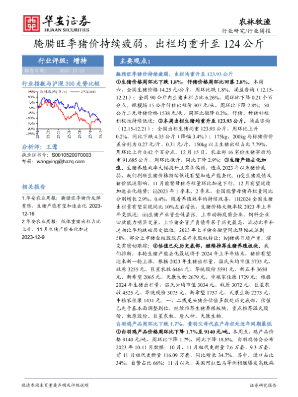【华安证券】【20231223】20231223-华安证券-农林牧渔行业周报:腌腊旺季猪价持续疲弱,出栏均重升至124公斤-41页