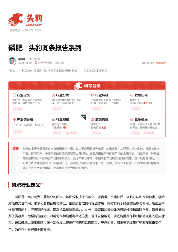 【头豹研究院】【20240130】20240130-头豹研究院-磷肥 头豹词条报告系列-19页