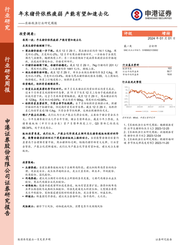 【申港证券】【20240101】20240101-申港证券-农林牧渔行业研究周报:年末猪价依然疲弱 产能有望加速去化-13页