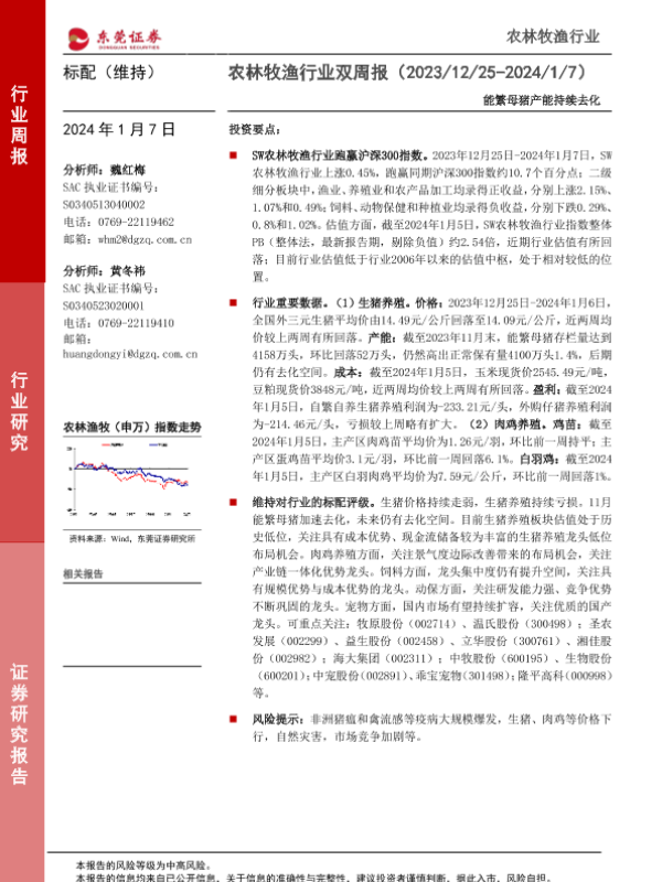 【东莞证券】【20240107】农林牧渔行业双周报:能繁母猪产能持续去化-10页