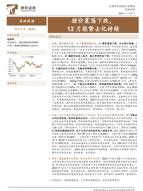 【德邦证券】【20240108】20240108-德邦证券-农林牧渔行业周报:猪价震荡下跌,12月能繁去化持续-17页