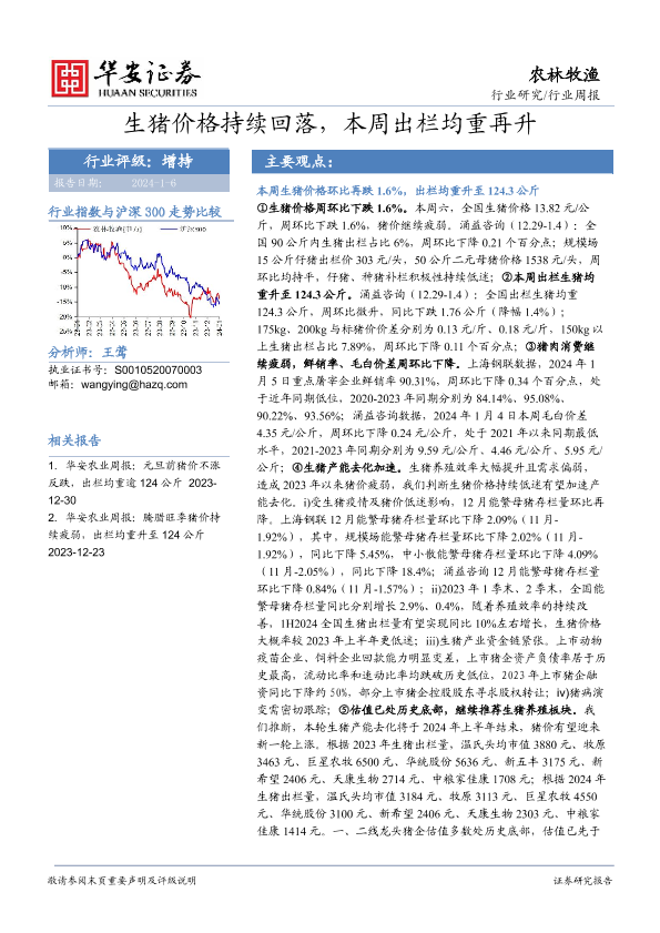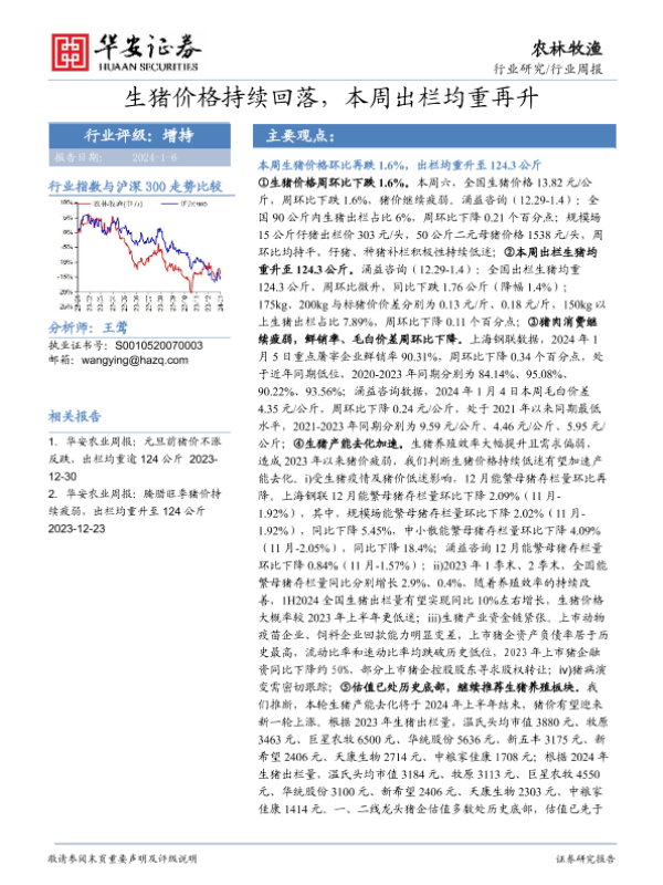 【华安证券】【20240106】20240106-华安证券-农林牧渔行业周报:生猪价格持续回落,本周出栏均重再升-42页