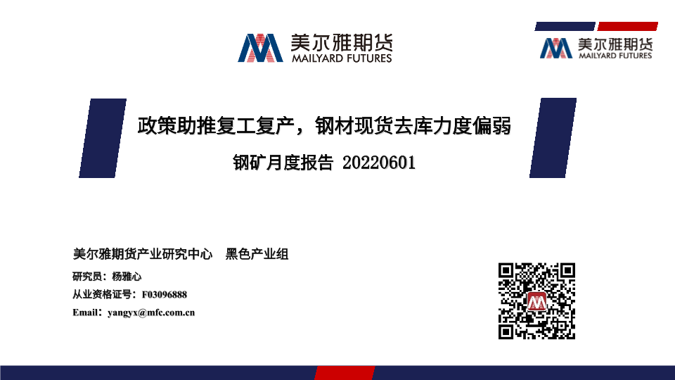 【美尔雅期货】【20220601】钢矿月度报告:政策助推复工复产,钢材现货去库力度偏弱-32页