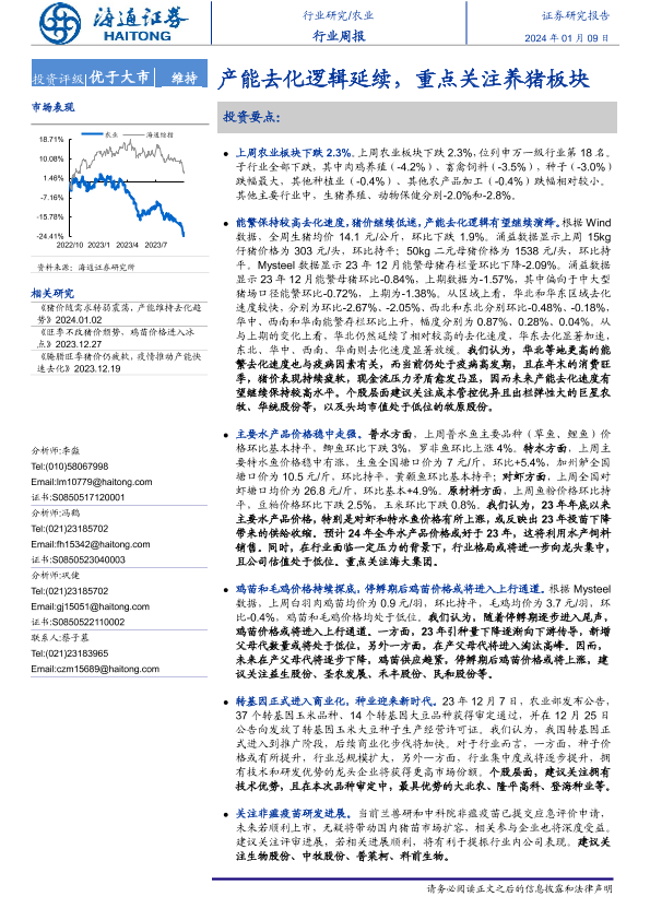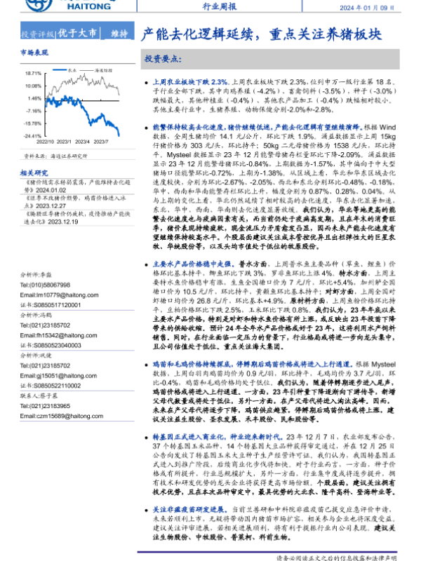 【海通证券】【20240109】20240109-海通证券-农业行业周报:产能去化逻辑延续,重点关注养猪板块-11页