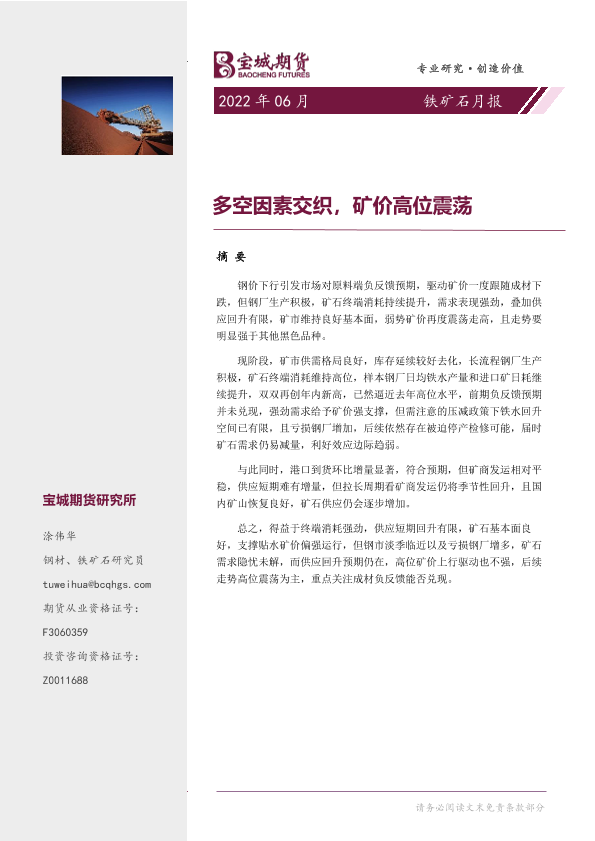 【宝城期货】【20220530】铁矿石月报:多空因素交织,矿价高位震荡-17页