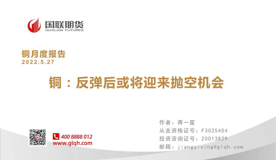 【国联期货】【20220527】铜:反弹后或将迎来抛空机会-20页