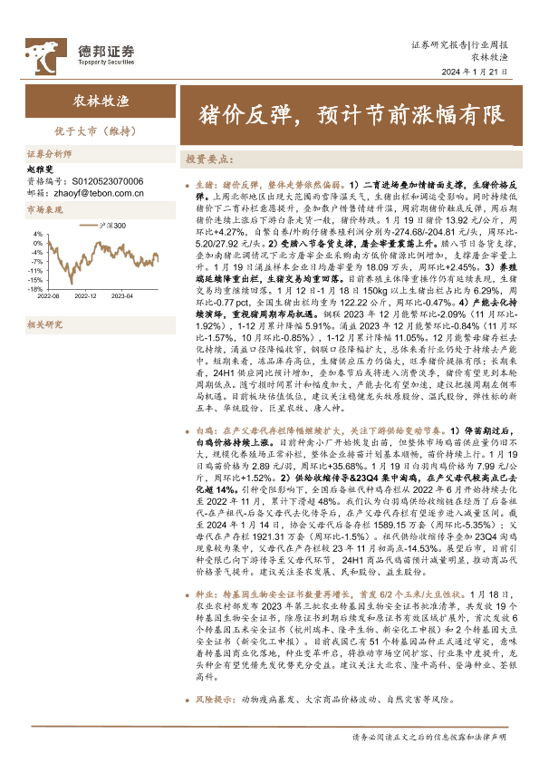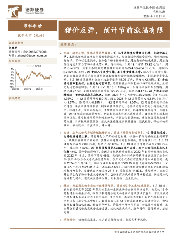 【德邦证券】【20240121】20240121-德邦证券-农林牧渔行业周报:猪价反弹,预计节前涨幅有限-17页
