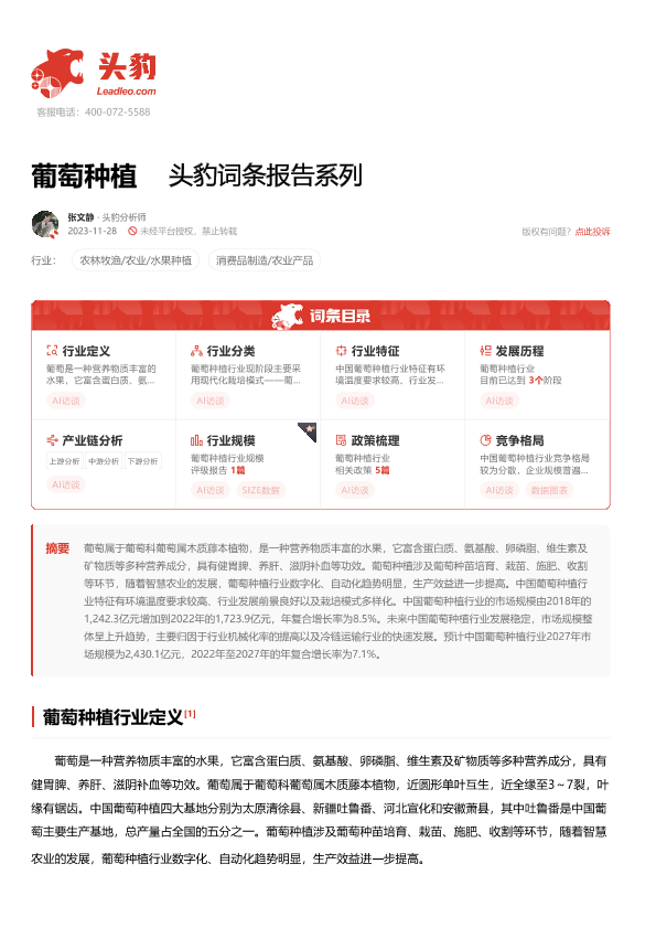 【头豹研究院】【20231128】葡萄种植 头豹词条报告系列-17页