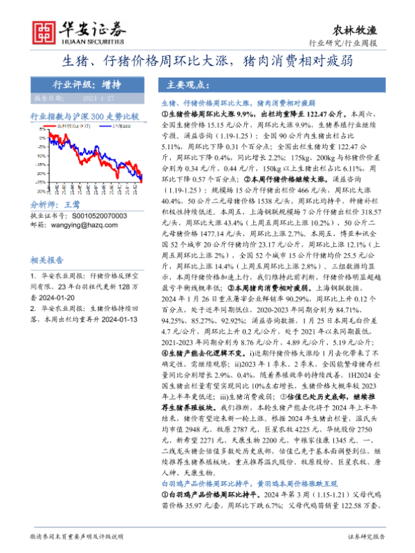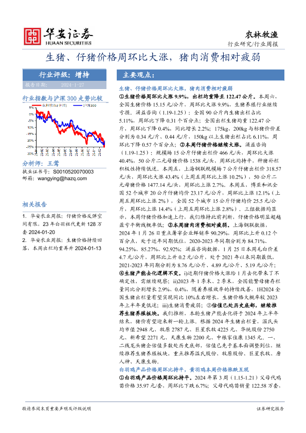 【华安证券】【20240127】20240127-华安证券-农林牧渔行业周报:生猪、仔猪价格周环比大涨,猪肉消费相对疲弱-41页